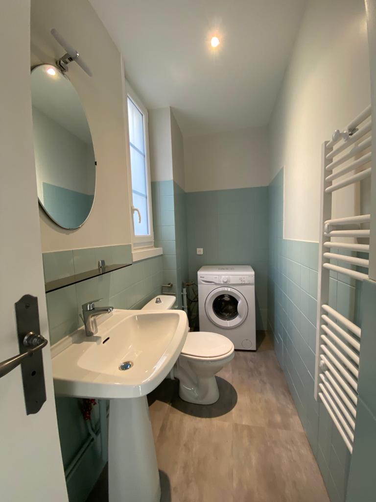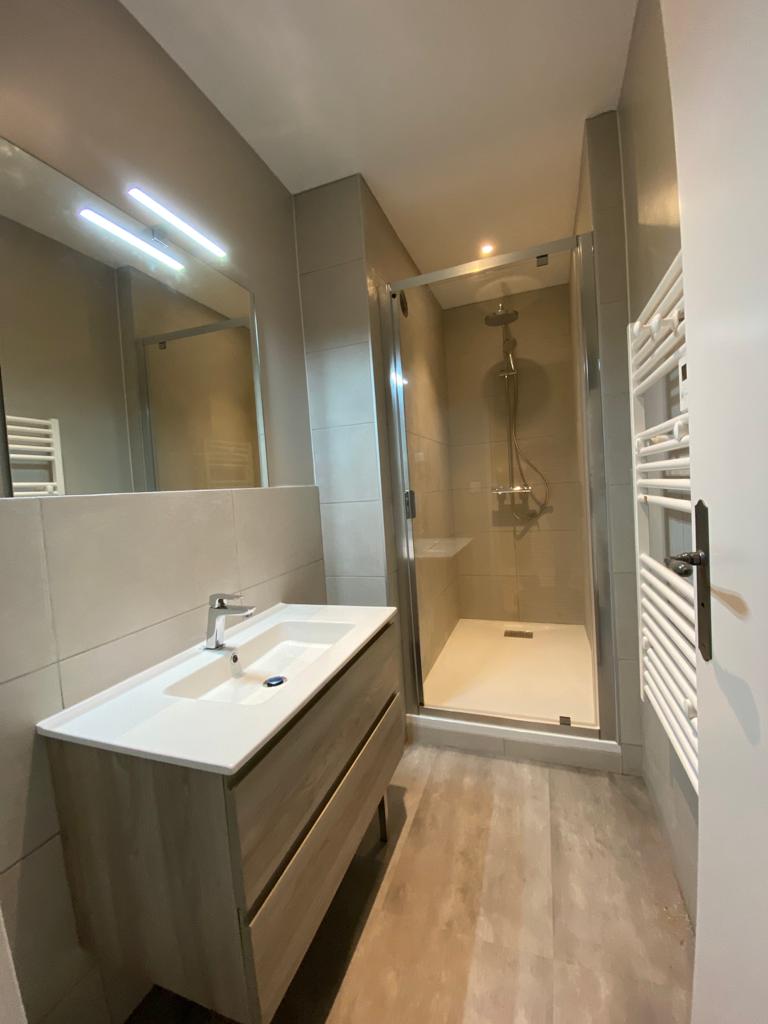 Salle de bain avec grande douche – sèche-cheveux et sèche serviette