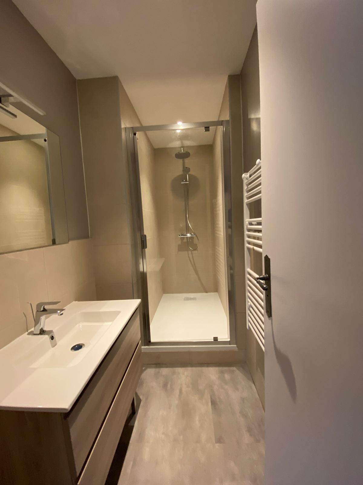 Salle de bain avec grande douche –sèche-cheveux , sèche serviette